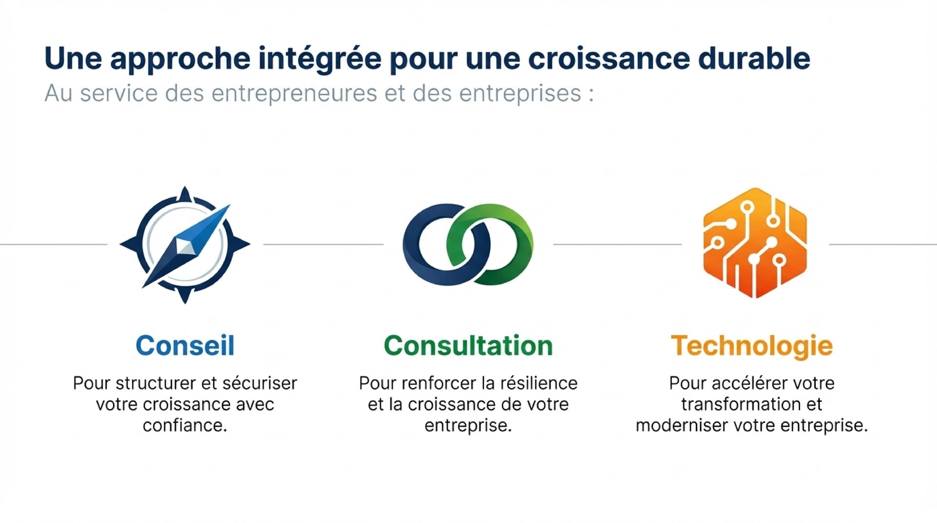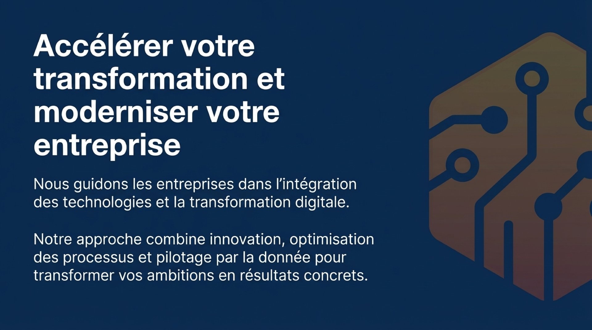 Chez Nexus Advisory, nous guidons les entreprises dans l'intégration des technologies et la transformation digitale. Notre approche combine innovation, optimisation des processus et pilotage par la donnée pour transformer vos ambitions en résultats concrets.